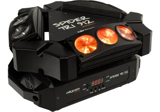 Diseñado para ser utilizado tanto por principiantes como por profesionales, el Spider Tri 912 ofrece numerosos modos de funcionamiento diferentes para satisfacer todas tus expectativas. Para animar la fiesta en cuestión de segundos sin ajustes complicados, simplemente utiliza el modo Automático o el modo Detección de Música, ¡y el Spider Tri 912 se encargará de incendiar la pista de baile! Para los profesionales que desean crear un espectáculo de luces más avanzado, el Spider Tri 912 cuenta con un modo DMX que puede funcionar con 16, 24 o 48 canales para ajustar cada LED de forma independiente. Las opciones de instalación flexibles del Spider Tri 912 te permiten colocarlo en el suelo o colgarlo boca abajo para lograr un efecto de barrido impresionante en toda la habitación. Especificaciones técnicas Fuentes de luz: 9 LED RGBW de 12W3 mini barras motorizadas en un patrón triangularBase giratoria de 360° para efectos de barrido impresionantesModos: Automático, Musical, Maestro/Esclavo, DMXNúmero de canales DMX: 16, 24 y 48 canalesEntrada/salida DMX: XLR de 3 pinesPantalla: pantalla digital con 4 botones de controlVoltaje de suministro: 90-240V 50/60 HzConsumo de energía: 90WPeso y dimensiones: 6 kg, 540 x 530 x 260 mmClasificación de protección: IP20 (uso en interiores)Suministrado con cable de alimentación y abrazadera de velcro para cables, interfaz de suspensión y correa de seguridad