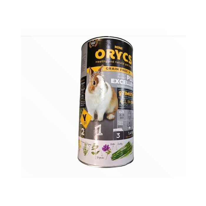 MINIORYCS ADULT PLUS EXCELLENT GRAIN FREE (PLUS PREVENT GF RABBIT) es un alimento para conejos enanos adultos a partir de los 6-8 meses de edad.