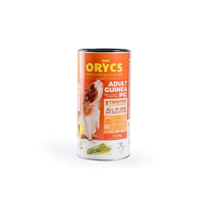 ORYCS Adult Guinea Pig es un alimento especialmente indicado para cobayas adultas a partir de 5/7 meses. Este delicioso y completo alimento está enriquecido con vitaminas y un aporte extra de vitamina C. Tiene un óptimo equilibrio en fibras, proteínas y grasas para una buena salud.