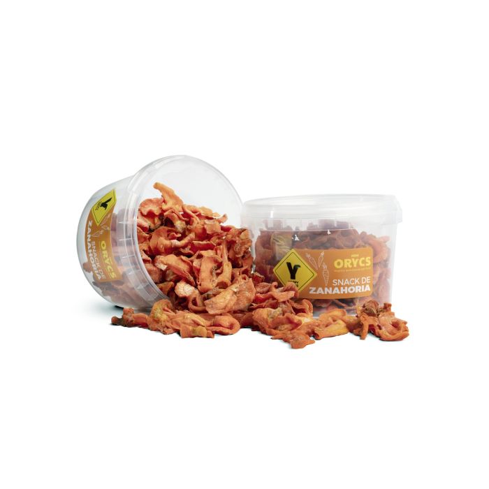 Alimento complementario para conejos y roedores. La zanahoria Miniorycs es un producto sin azúcares añadidos 100 % natural y muy saludable gracias al aporte de nutrientes y antioxidantes. Su alto contenido en vitaminas fortalece el sistema inmunitario y estimula los procesos de regeneración del cuerpo.