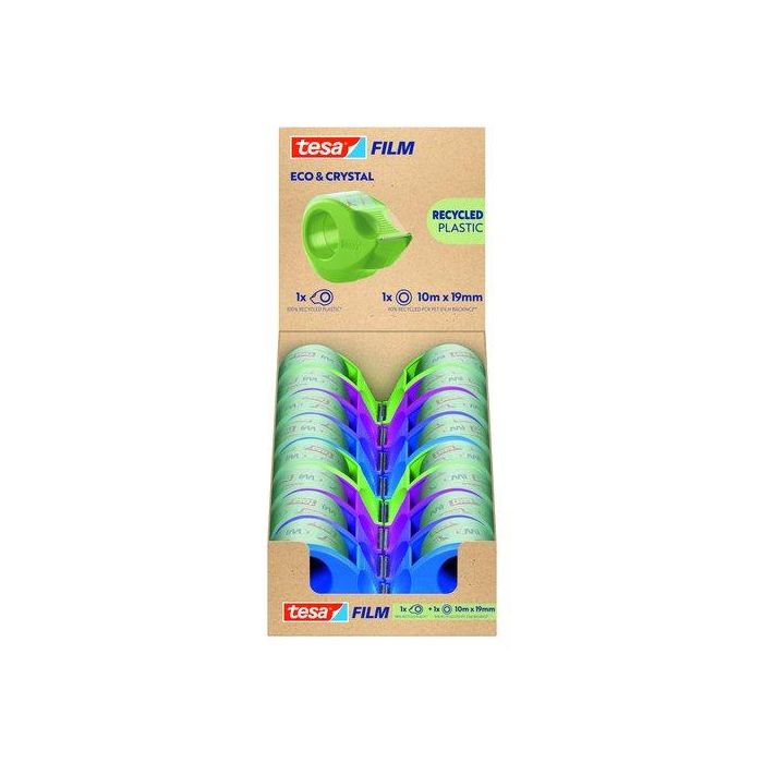 Cinta Adhesiva Tesa Eco&Crystal (90% Reciclado) Rollo 10X19 Con Mini Portarrollos (Set de 16)