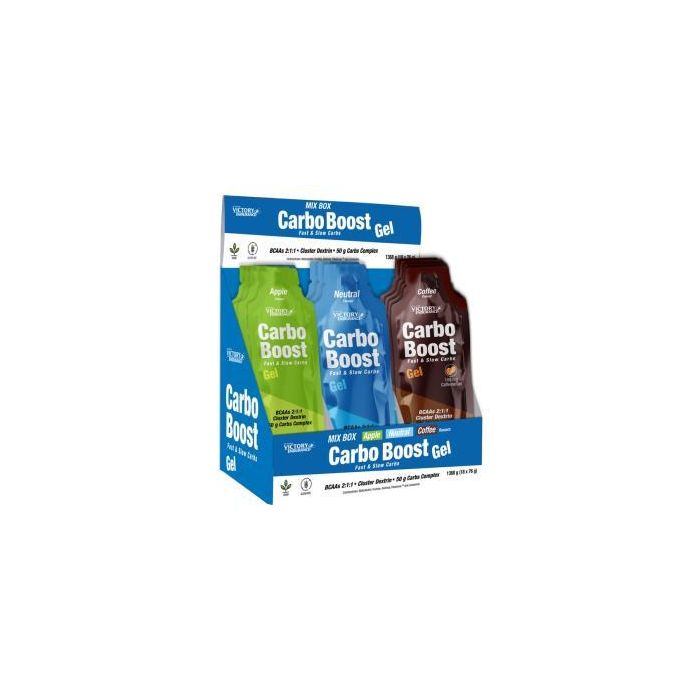 VICTORY ENDURANCE Mix Box Carbo Boost Gel Manzana-Neutro-Cafe 18Uds