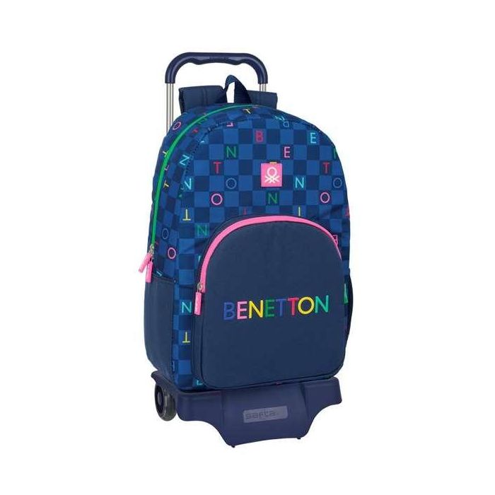 Mochila Escolar con Ruedas Benetton Damero Azul marino 30 x 46 x 14 cm