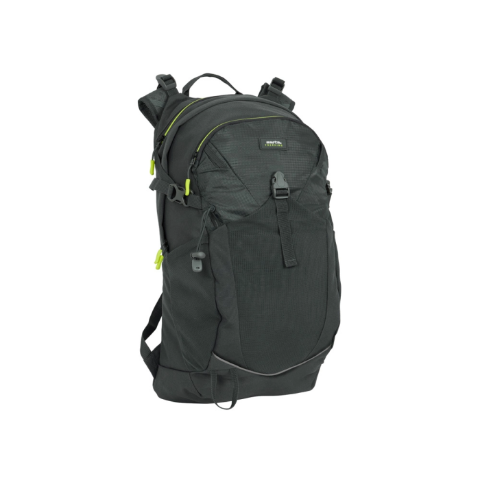 Cremallera bicolor. Tirador de plástico duro. Cintas con broche PVC para mantener la mochila acoplada al cuerpo. Regulable en altura. Detalles reflectantes delante y detrás. Bolsillo principal de gran capacidad, preparado para albergar un portátil de hasta 14,1”. Cintas para llevar esterilla. Espalda acolchada y ergonómica que se adapta perfectamente a la espalda para ofrecer mayor confort. Repelente al agua.