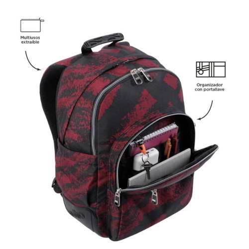 Totto Mochila Escolar Crayones MA04ECO029-2310N-5C5 Tiza Roja 20 Litros con Neceser y Bolsa para Calzado