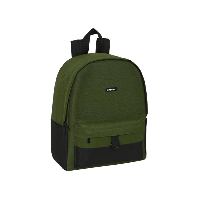 Alojamiento acolchado para portatil de hasta 14,1''. Bolsillo interior con cremallera. Bolsillos laterales portabotellas. Doble tirador en cremallera principal para facilitar su apertura. Bolsillo frontal con cremallera. Hombreras, espalda y base acolchadas. Asa de mano en la parte superior.