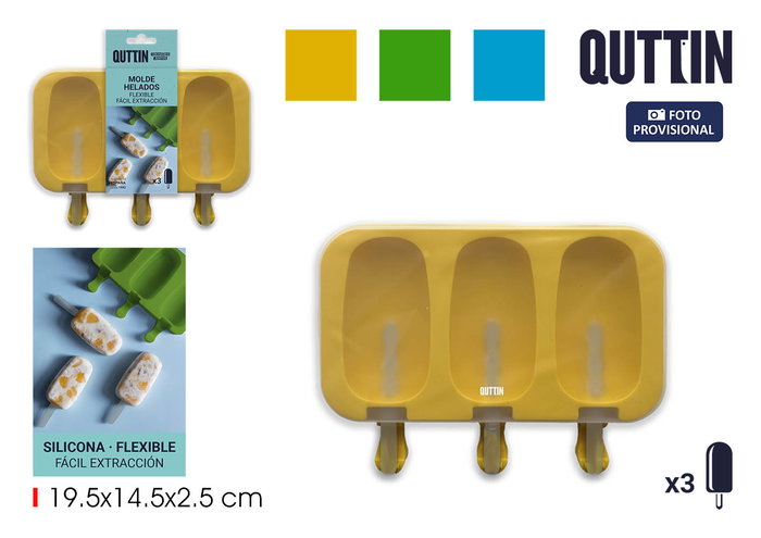 Quttin Molde para 3 Helados de Silicona 19.5x14.5x2.5 cm (24 Unidades)