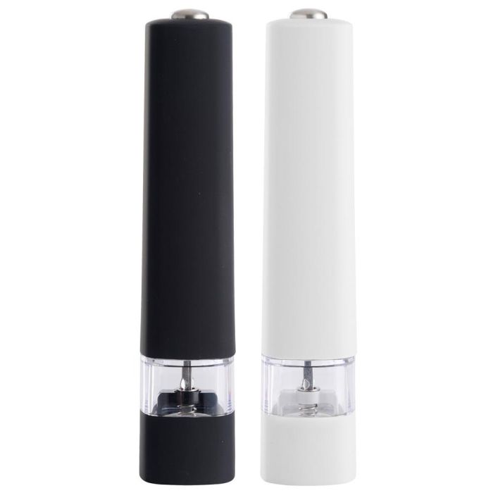 - Conjunto de 2 molinillos eléctricos para pimienta y para sal, de dos colores: blanco y negro.
