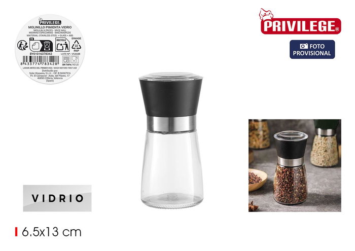 Inde Molinillo Pimienta Vidrio Privilege 6,4 cm Ancho x 13 cm Alto x 6,3 cm Largo (24 Unidades)