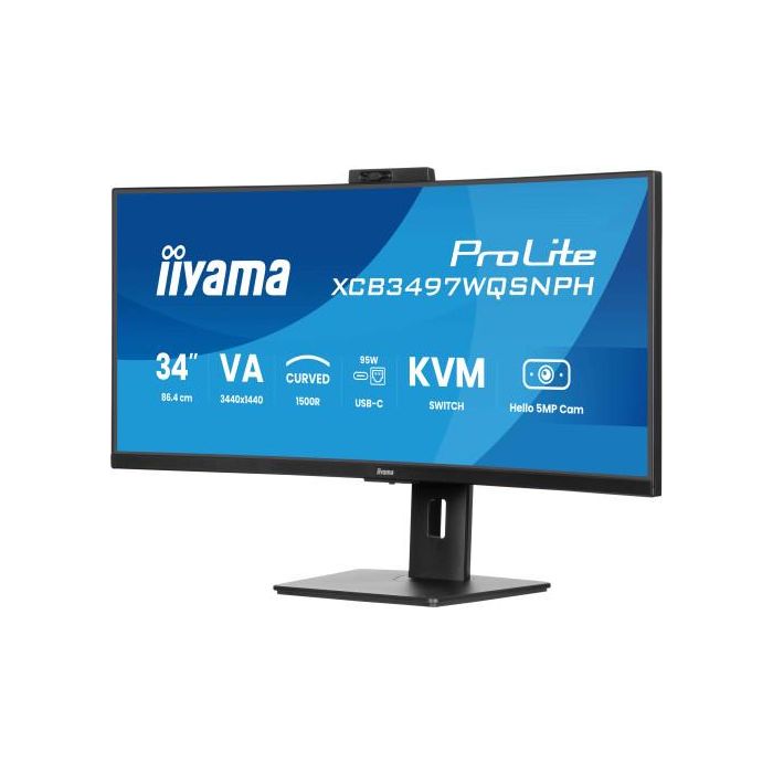 Iiyama Monitor XCB3497WQSNPH-B1 Curvo VA UWQHD 34'' Cámara 5MP Windows Hello KVM USB-C 95W