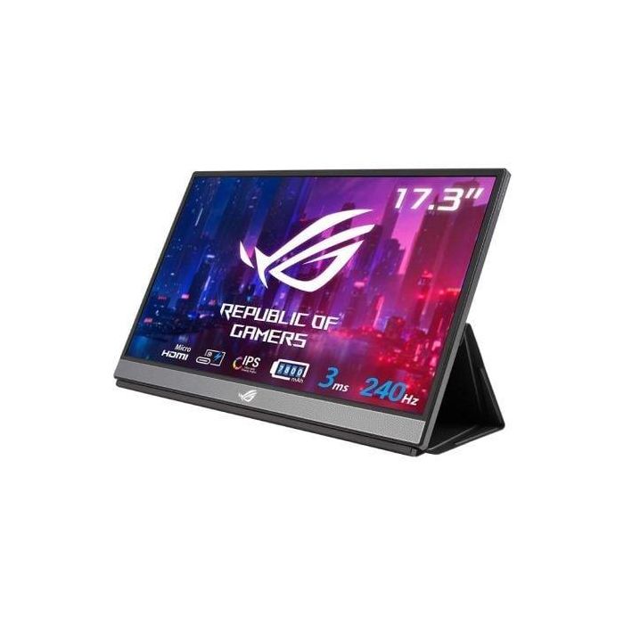 ROG Strix XG17AHPE es un impresionante monitor portátil IPS Full HD de 17.3 pulgadas diseñado para juegos. El tiempo de respuesta de 3ms, la frecuencia de actualización de 240 Hz y la sincronización adaptativa aseguran que su juego se ejecutará con velocidad y claridad, mientras que el diseño ultradelgado y la potente batería incorporada de 7800 mAh significa que puede llevarlo a cualquier parte. Combine eso con la Smart Cover personalizada y obtendrá el mejor monitor portátil para juegos.