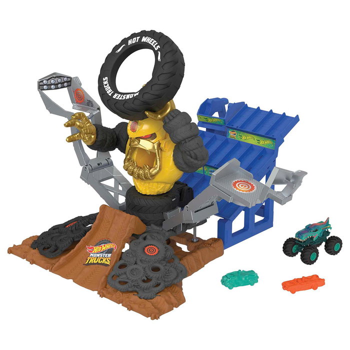En el set de juego Mega-Wrex vs. Crushzilla Takedown, lucha contra un némesis dinámico llamado Crushzilla, que gira y pivotea con cada ataque. Lanza el camión de juguete Mega-Wrex incluido desde diferentes ángulos en los puntos de aplastamiento designados para conquistar el desafío y noquear a la bestia. El set también incluye dos autos aplastables.