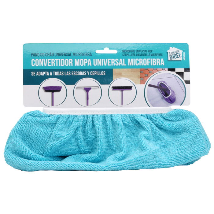 - Bolsa de microfibra con una goma en la parte superior que se adapta a todos los cepillos y escobas, convirtiéndolos en una mopa.