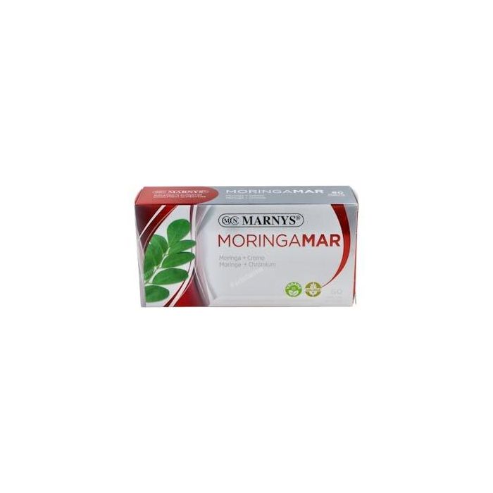 Concentrado en polvo de hojas de moringa (Moringa oleífera) 500 mg, picolinato de cromo 20 µg (50% VRN) y estearato de magnesio.