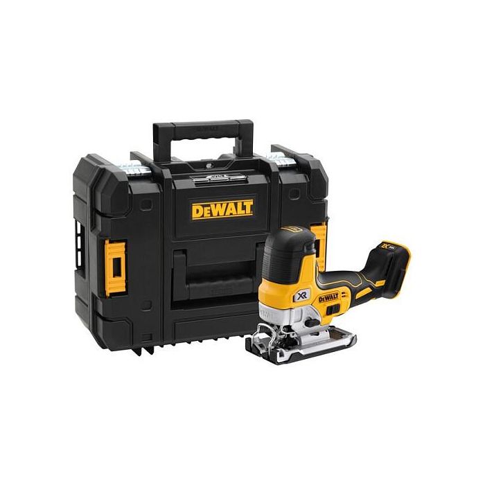 DeWALT Sierra de calar a batería DCS335NT, 18 V, Velocidad Ajustable, Corte Biselado 45°, Profundidad de Corte 13,5 cm en Madera