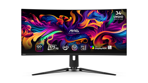 MSI MAG 341CQP QD-OLED. Diagonal de la pantalla: 86,4 cm (34"), Resolución de la pantalla: 3440 x 1440 Pixeles, Tipo HD: UltraWide Quad HD, Tecnología de visualización: QDOLED, Relación de aspecto nativa: 21:9, Ángulo de visión, horizontal: 178°, Ángulo de visión, vertical: 178°. Conector USB incorporado, Versión de conector USB: 2.0. montaje VESA, Ajustes de altura. Color del producto: Negro