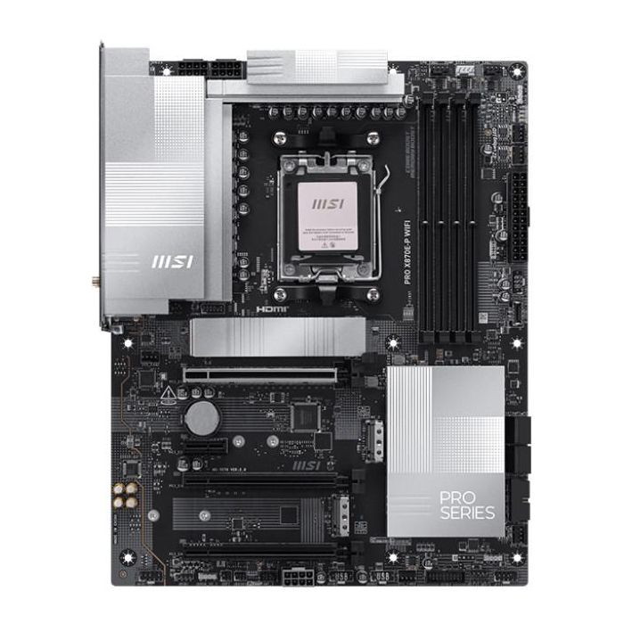 La PRO X870E-P WIFI está equipada con una impresionante gama de opciones de conectividad, incluyendo Wi-Fi 7, LAN 5G y múltiples puertos USB de alta velocidad. Ya sea para trabajo, gaming o creación de contenido, garantiza una conexión estable y rápida.
