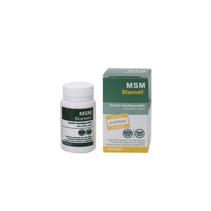 - COMPOSICION Por comprimido: Metil Sulfonil Metano: 500 mg, Excipientes: csp. En polvo, 500 g por Kg. INDICACIONES Piel: Coadyuvante en los tratamientos antialérgicos, dermatitis (elimina los picores residuales en perros con tratamientos alérgicos), fortalece las uñas y los pulpejos, previene la alopecia, proporciona una piel sana y brillante, mejora los efectos dérmicos después del moquillo. Dolores musculares, artritis en tratamientos prolongados, reumatismo, bursitis,gastritis aguda, efecto diurético, alergias respiratorias. Alternativa al uso de corticoides. POSOLOGIA 1 comp./d¡a por cada 10 Kg de peso.