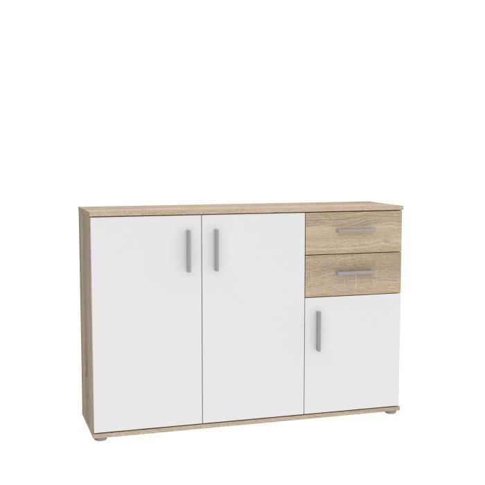 Mueble de almacenaje IKOLI, 3 puertas y 2 cajones, decoración roble Sonoma y blanco, L119.6 x P31.4 x H81.7 cm - IKLK232Q45F
