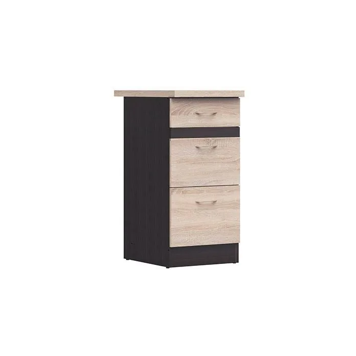 Junona Kitchen Mueble bajo JUNONAMB3T40CH de 40 cm con 3 cajones y encimera Chene Sonoma