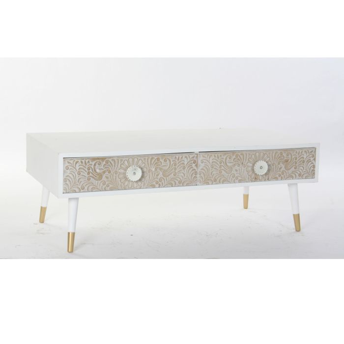 DKD Home Decor Mesa Centro Indio Madera Clara Blanca 120x65x42 cm 4 Cajones Mandala