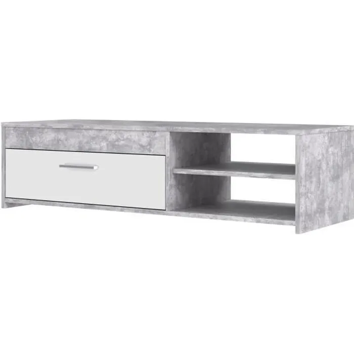 PILVI Mueble de televisión moderno - Hormigón blanco y gris claro - An 120 x P 42,1 x Al 31,8 cm