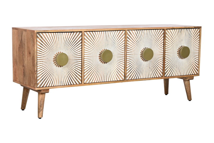 DKD Home Decor Mueble TV Sunny 23 Blanco Natural 145x40x60 cm Madera Mango 4 Puertas Talladas