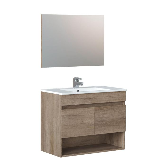 Forés/Arkit Mueble suspendido para baño, 2 puertas + espejo, marrón nordik, melamina y PVC, 80x45x64 cm