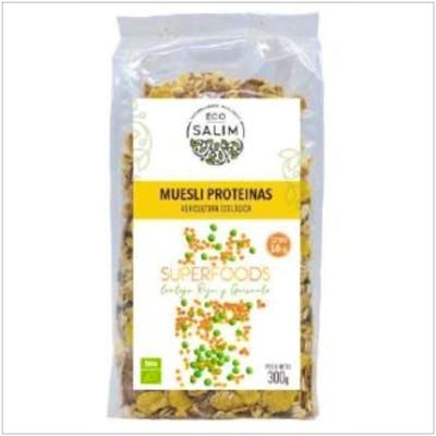 ECO SALIM Muesli Proteínas Superfoods Vegano con Copos de Guisante, Lenteja Roja y Semillas de Calabaza 300Gr. Bio