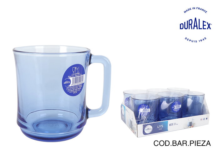 Duralex Mug Apilable Marine, Taza de Vidrio 31 cl, 10 x 8 x 10 cm, Cristal Templado Resistente (24 Unidades)