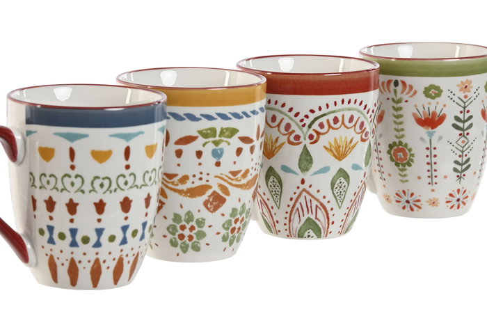 DKD Home Decor Surtido Taza Porcelana Boho Multicolor 8.5 x 10 x 11.5 cm 320ml Apta Microondas y Lavavajillas (12 Unidades)