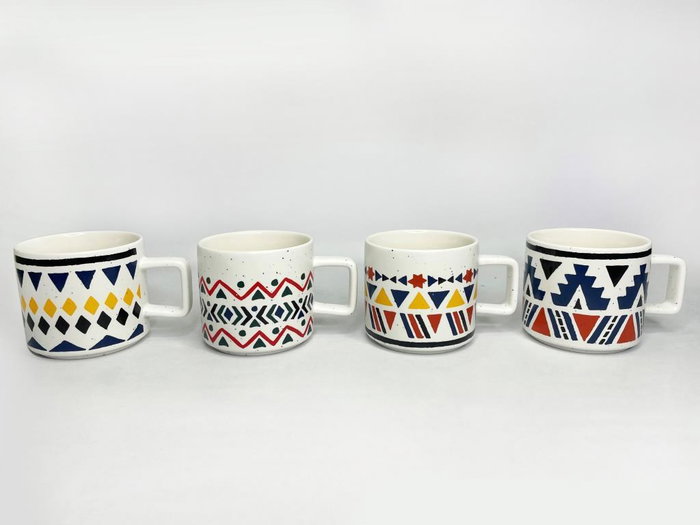 DKD Home Decor Mug Boho Multicolor 9.2 x 8.5 x 13 cm New bone 420ml Apto Microondas Lavavajillas (12 Unidades)