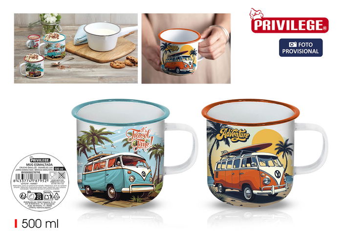 Mug Esmaltada Blanca Van 500Ml Privilege