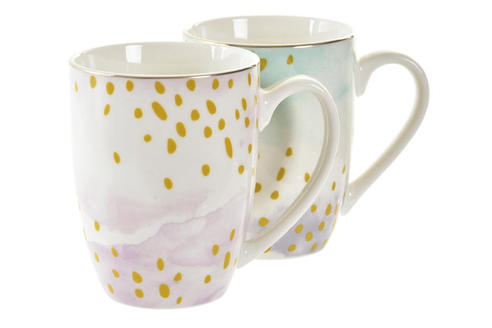 DKD Home Decor Mug Porcelana Rosa Verde Menta Blanco 380ml Apto Microondas Lavavajillas 8.5 x 9.5 x 12 cm (12 Unidades)