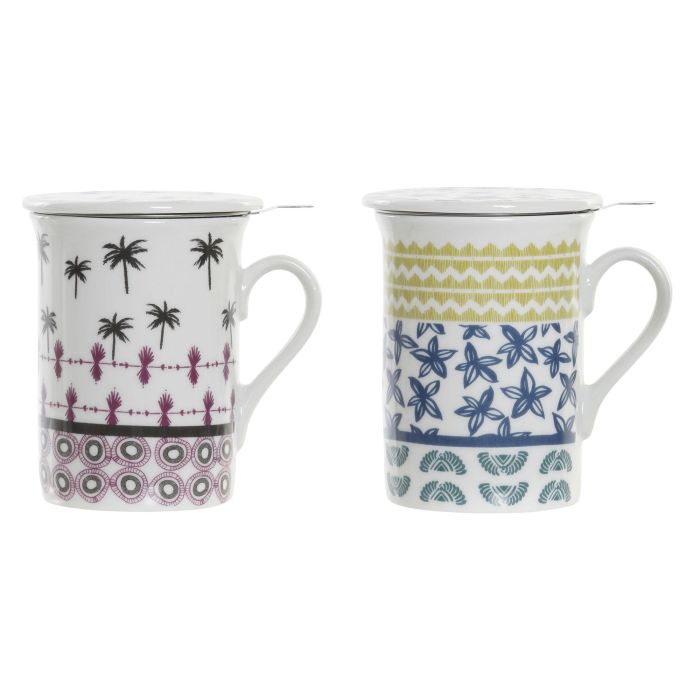 DKD Home Decor Mug Infusiones Colonial de Gres y Porcelana, 280ml, Azul Granate, 8.5 x 11 x 11 cm, Apto Microondas y Lavavajillas (12 Unidades)