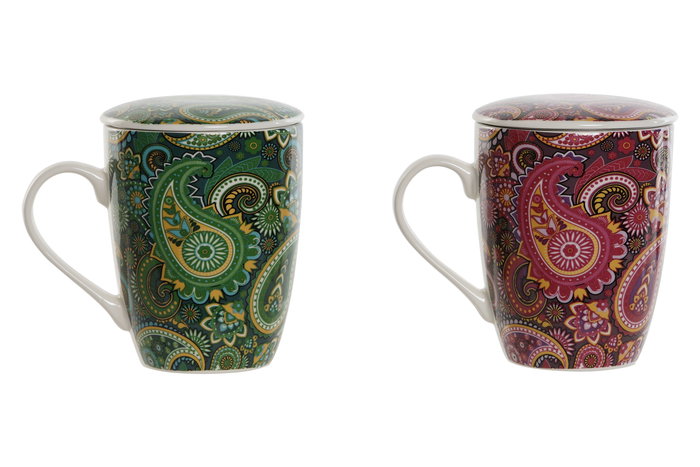 DKD Home Decor Mug Infusiones Moderno Porcelana Inox 340ml Lila Turquesa 6x10.5x8.3cm Apto Microondas Lavavajillas (2 Unidades)