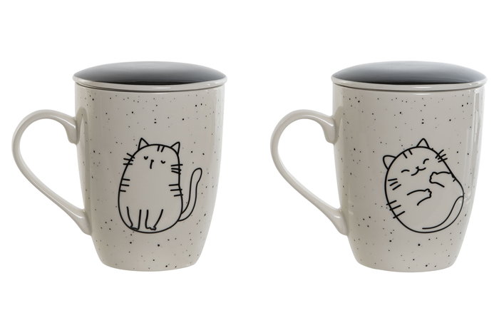 DKD Home Decor Mug Infusiones Scandi Blanco Negro 340ml Porcelana Inox Apto Microondas Lavavajillas Set 2 Unidades Caja Regalo
