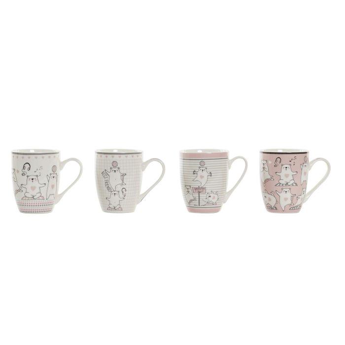 DKD Home Decor Mug Kids Rosa Blanco Porcelana 350ml con Osos (12 Unidades) Apto Microondas y Lavavajillas 8 x 11 x 12 cm