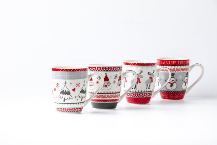 DKD Home Decor Mug Navidad Tradicional Rojo Gris Porcelana New Bone 12 Unidades 340ml