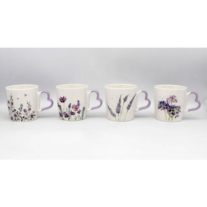 DKD Home Decor Mug Malva Blanco Porcelana New Bone 400ml Apto Microondas y Lavavajillas 9.5 x 9.5 x 13.5 cm (12 Unidades)