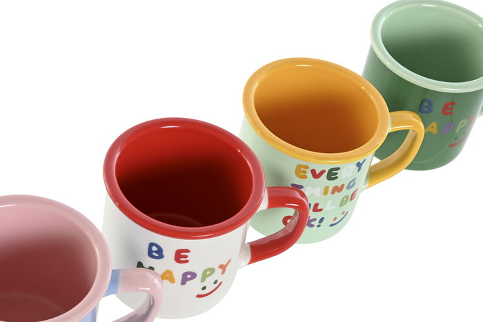 DKD Home Decor Mug Shabby Summer New Bone 380ml Multicolor Surtido Apto Microondas y Lavavajillas (Pack 12 Unidades)