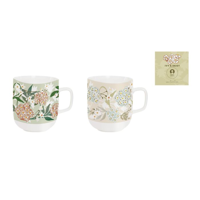 DKD Home Decor Mug Tradicional Porcelana Verde Beige 380ml Pack 12 Unidades Apto Microondas y Lavavajillas 11.5x8.5x10cm