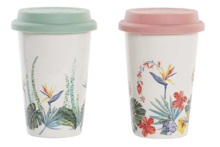 DKD Home Decor Mug Tropical Colección Tropic Garden Multicolor 10 x 14 x 10 cm (6 Unidades) Porcelana y Silicona 400ml