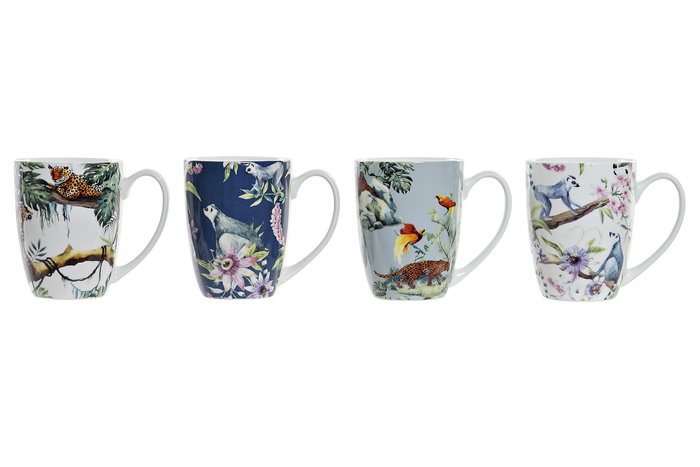 DKD Home Decor Taza Porcelana Tropical Multicolor 400ml 8.2 x 10.6 x 12 cm (12 Unidades)