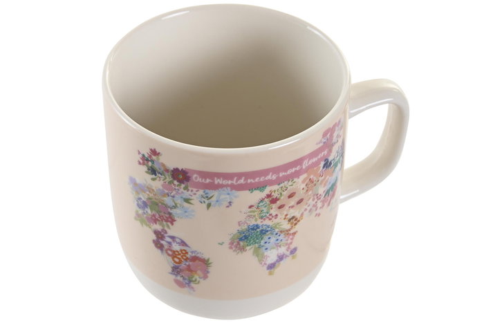 DKD Home Decor Mug Porcelana World&flowers Urban Multicolor 380ml 8.5 x 10 x 11.5 cm Apto Microondas y Lavavajillas (12 Unidades)