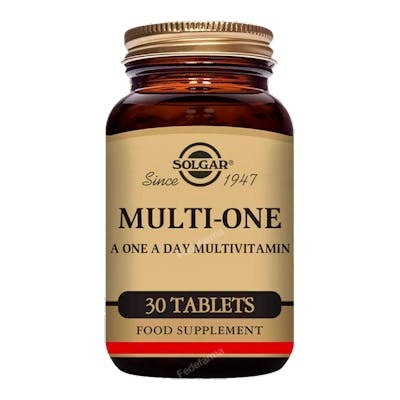 Indicaciones: Una fórmula muy completa de vitaminas y minerales en dosis bajas para apoyar el bienestar diario, la producción de energía y la función cognitiva. Sus minerales orgánicos en forma quelada (para una mejor absorción) y el 100% del VRN de vitaminas como el complejo B, la vitamina D, la vitamina E o la vitamina C, permiten que Multi-One de Solgar® apoye la producción de energía, la función cognitiva y ayude a disminuir el cansancio y la fatiga: El ácido pantoténico contribuye al rendimiento intelectual normal y el zinc, el yodo y el hierro contribuyen a la función cognitiva normal. Las vitaminas B6, B12 y vitamina C, el ácido pantoténico, folatos, magnesio, hierro, niacina y riboflavina ayudan a disminuir el cansancio y la fatiga. Producto vegano.