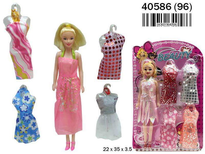 Muñeca maniqui con 4 Vestidos. 22x35x3,5 cm