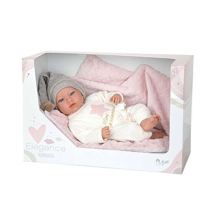 Muñeca elegance aria rosa con portabebe, incluye chupete (muñeco de peso)40 cm