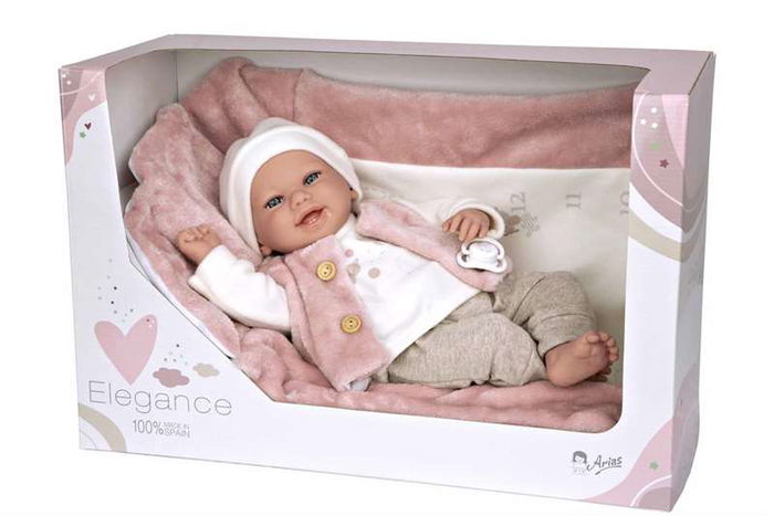 Muñecas Arias Muñeca Elegance 40 cm colin rosa con manta, muñeco de peso, español, para 3+ años