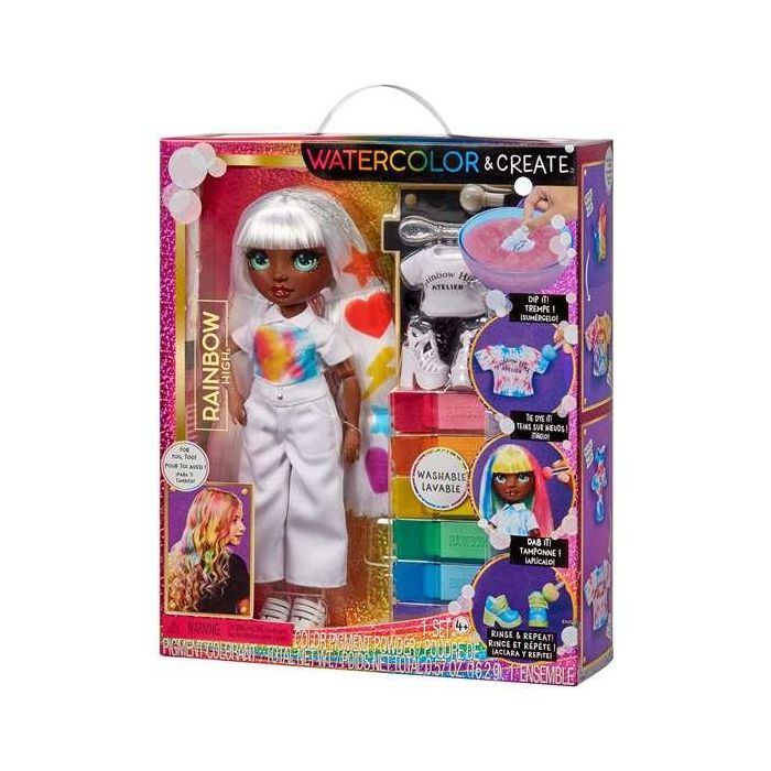 MGA Muñeca Rainbow High Watercolor & Create Ojos Verdes 22 cm. Crea Tu Propia Muñeca con Pincel o Sumerge su Ropa en Agua con Polvos de Color